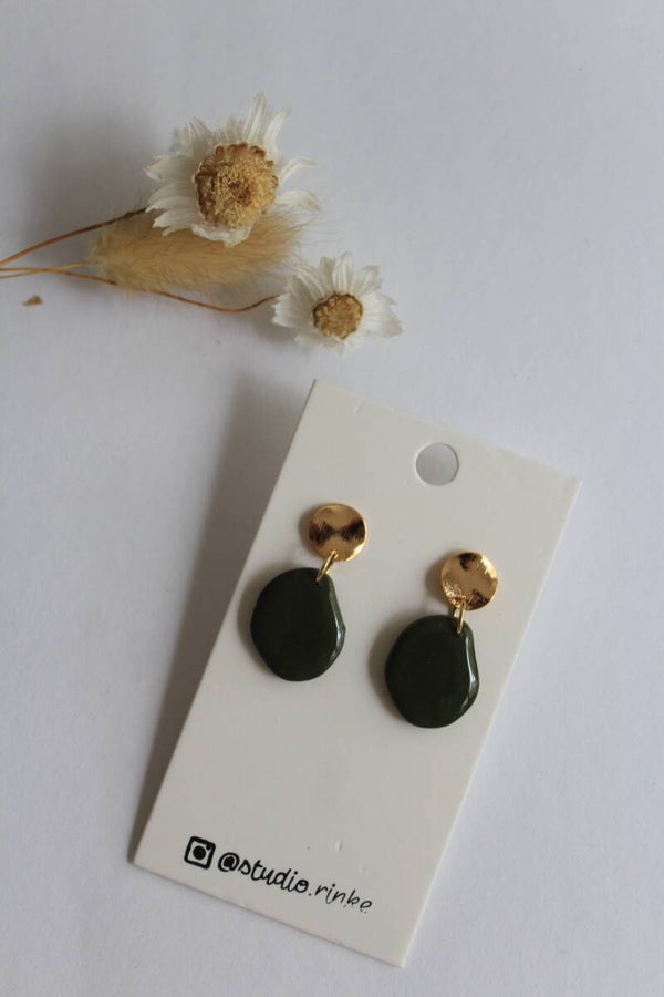 Mooie oorbel met een elegante goudkleurige stud met olijfgroene hanger.